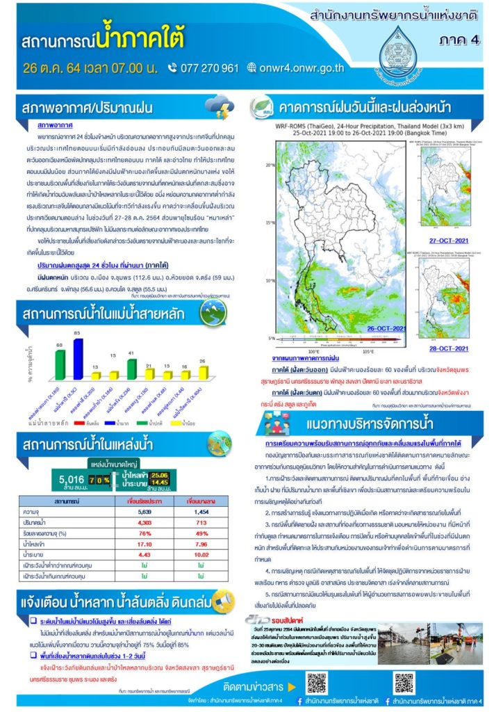 สถานการณ์น้ำพื้นที่ภาคใต้ วันที่ 26/10/2564 26 ตุลาคม 202126 ตุลาคม 2021 มงคลชัย กองรัตน์ 0 Comments แชร์ : 0 More สถานการณ์น้ำพื้นที่ภาคใต้