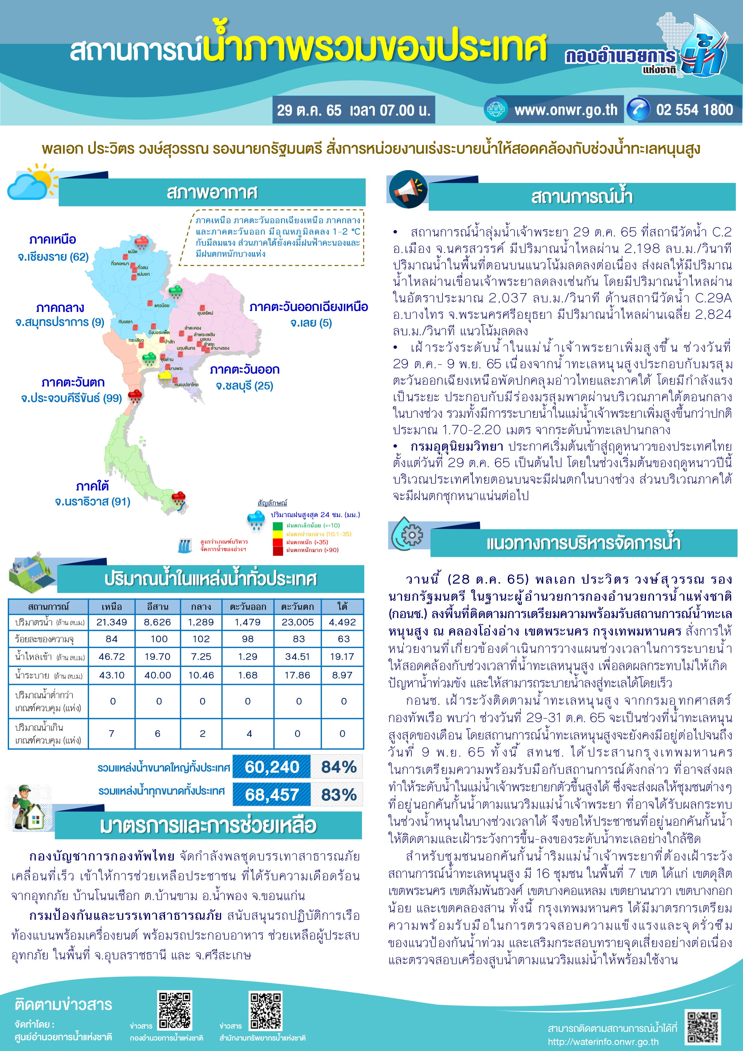 สรุปสถานการณ์น้ำภาพรวมของประเทศ วันที่ 29 ต.ค. 65 31 ตุลาคม 2022 มงคลชัย กองรัตน์ 0 Comments แชร์ : 0 More รายงานสรุปสถานการณ์น้ำ